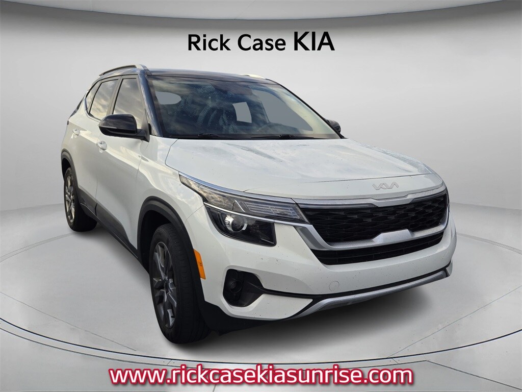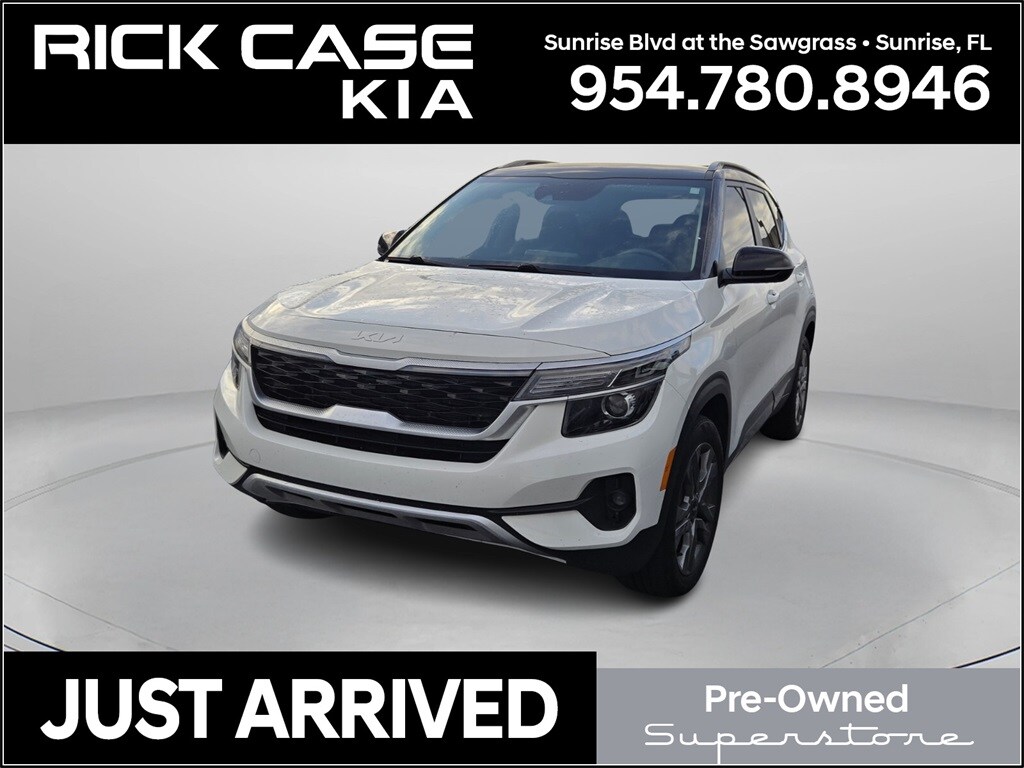 Recent Arrival! Clean CARFAX. 150 Point Inspection, Bluetooth, iPod Connector, Kia Certified, Navigation, BACK UP CAMERA, Unlimited Car Wash, Rick Case Rewards, 4-Wheel Disc Brakes, 6 Speakers, ABS brakes, Apple CarPlay & Android Auto, Automatic temperature control, Dual front impact airbags, Dual front side impact airbags, Emergency communication system: 911 Connect, Exterior Parking Camera Rear, Front anti-roll bar, Front wheel independent suspension, Glossy Black Door Garnish, Glossy Black Door Garnish Package, Low tire pressure warning, Navigation System, Occupant sensing airbag, Overhead airbag, Overhead console, Passenger vanity mirror, Radio: AM/FM/MP3 Display Audio w/Navigation, Rear seat center armrest, Tachometer, Telescoping steering wheel, Tilt steering wheel, Trip computer, Wheels: 17" Alloy w/Dark Gray Finish. Certified. Clear White/Black Roof 2022 Kia Seltos S FWD CVT 2.0L I4 MPI Kia Certified Pre-Owned Details: