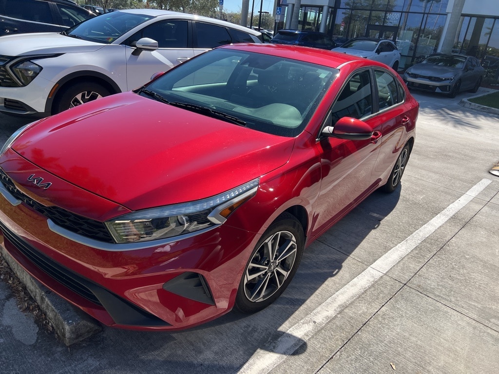 Recent Arrival! Priced below KBB Fair Purchase Price! CARFAX One-Owner. Clean CARFAX. 10 year or 100,000 mile Powertrain Warranty, 150 Point Inspection, Kia Certified, Unlimited Car Wash, Rick Case Rewards, 16" x 6.5J Alloy Wheels, 4-Wheel Disc Brakes, ABS brakes, Alloy wheels, Auto High-beam Headlights, Blind-Spot Collision Avoidance (BCA), Brake assist, Delay-off headlights, Electronic Stability Control, Exterior Parking Camera Rear, Heated Outside Mirrors, LED Turn Signal w/Outside Mirror Indicators, LXS Technology Package, Panic alarm, Rear Cross-Traffic Collision Avoidance (RCCA), Safe Exit Warning (SEW), Security system, Speed control. Certified. Currant Red 2023 Kia Forte LXS FWD CVT 2.0L I4 MPI Kia Certified Pre-Owned Details: