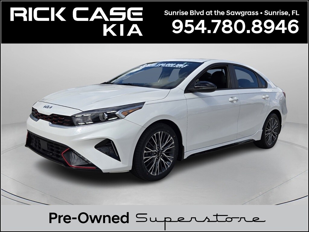 Priced below KBB Fair Purchase Price! CARFAX One-Owner. Clean CARFAX. 150 Point Inspection, Bluetooth, iPod Connector, Kia Certified, Leather, Navigation, Power Sunroof, BACK UP CAMERA, Unlimited Car Wash, Rick Case Rewards, Apple CarPlay & Android Auto, Brake assist, Electronic Parking Brake (EPB), Electronic Stability Control, Forward Collision Avoidance-Assist - Cyclist, GT-Line Premium Package, LED Interior Lighting, Navigation System, Navigation-Based Smart Cruise Control (NSCC), Panic alarm, Power Sunroof, Radio: harman kardon Premium Audio, Security system, Smart Cruise Control w/Stop & Go, Wireless Charging. Certified. Snow White Pearl 2023 Kia Forte GT-Line FWD CVT 2.0L I4 MPI Kia Certified Pre-Owned Details: