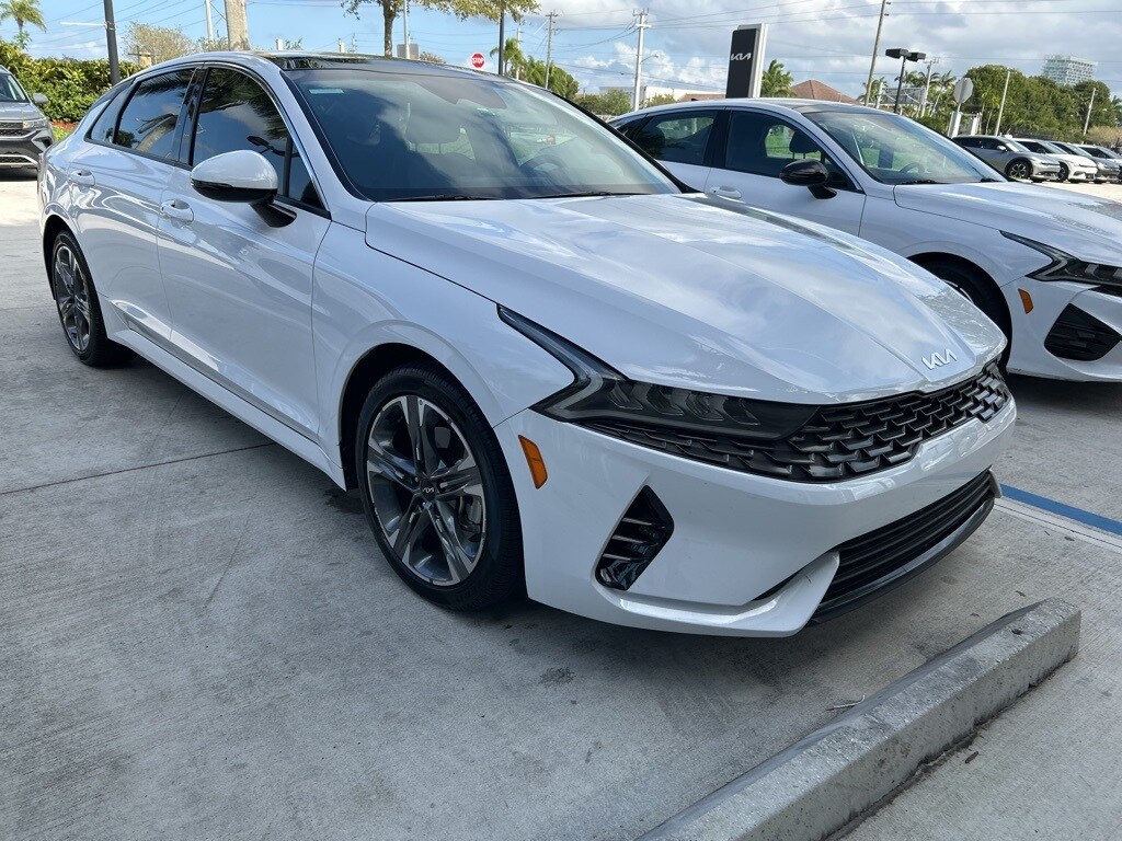Recent Arrival! CARFAX One-Owner. 150 Point Inspection, Bluetooth, iPod Connector, Kia Certified, Navigation, Panoramic Roof, BACK UP CAMERA, Unlimited Car Wash, Rick Case Rewards, 4-Wheel Disc Brakes, 6 Speakers, ABS brakes, Air Conditioning, Apple CarPlay & Android Auto, Brake assist, Dual front impact airbags, Dual front side impact airbags, Electronic Stability Control, Emergency communication system, Four wheel independent suspension, Front anti-roll bar, Heated & Ventilated Front Bucket Seats, Knee airbag, Low tire pressure warning, Navigation System, Occupant sensing airbag, Overhead airbag, Power driver seat, Power moonroof, Radio data system, Rear anti-roll bar, Rear side impact airbag, Rear window defroster, Steering wheel mounted audio controls, Telescoping steering wheel, Tilt steering wheel, Traction control, Trip computer, Wheels: 18" Gray Machined Finish Alloy. Certified. Glacial White Pearl 2023 Kia K5 EX FWD 8-Speed Automatic 1.6L I4 DGI Turbocharged DOHC 16V LEV3-ULEV70 180hp Kia Certified Pre-Owned Details: