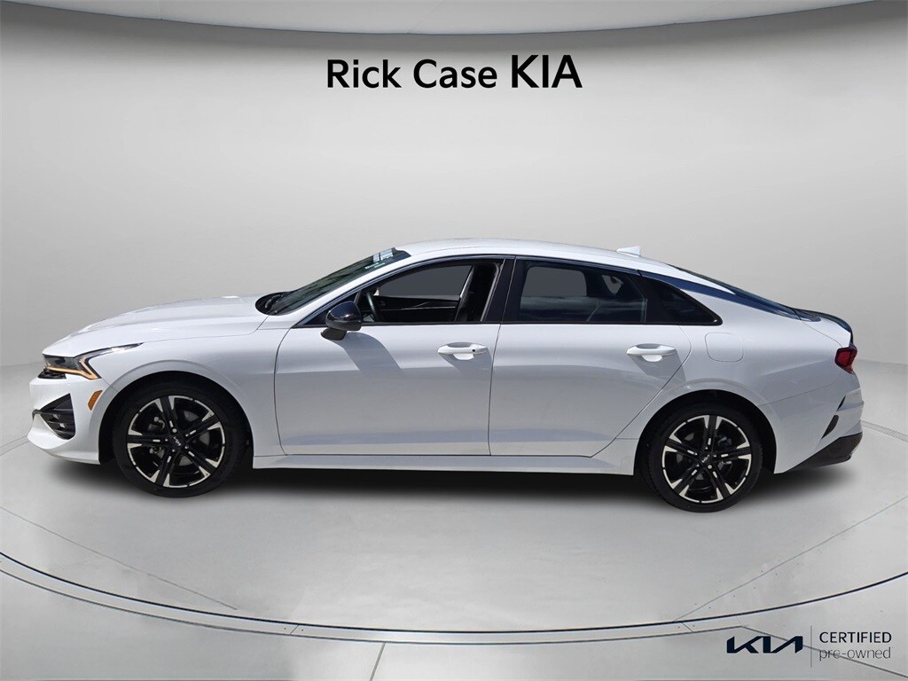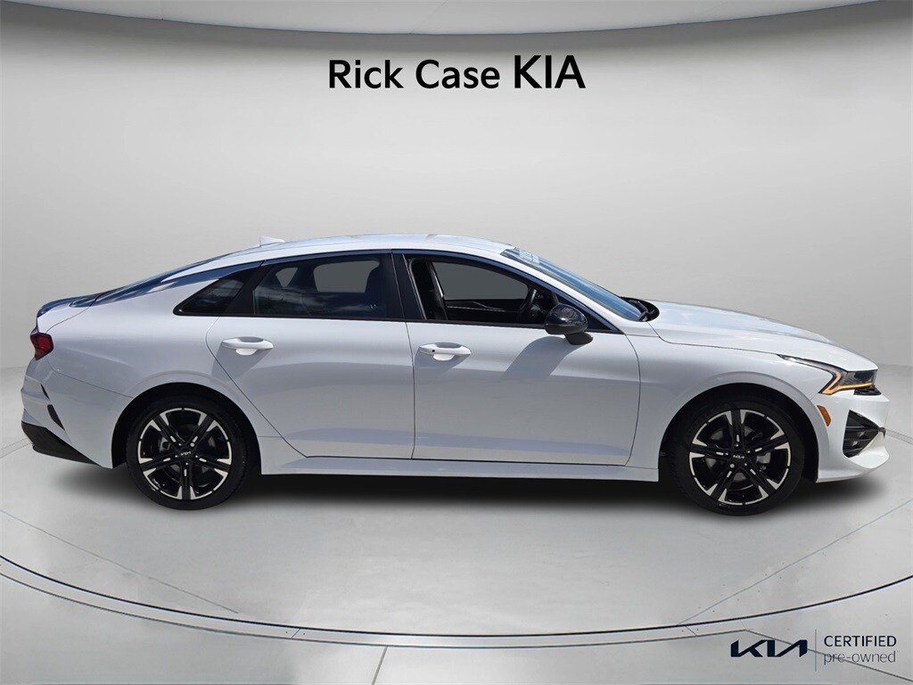 Priced below KBB Fair Purchase Price! CARFAX One-Owner. 150 Point Inspection, Bluetooth, Kia Certified, Leather, Navigation, BACK UP CAMERA, Unlimited Car Wash, Rick Case Rewards, 4-Wheel Disc Brakes, 6 Speakers, ABS brakes, Apple CarPlay & Android Auto, Automatic temperature control, Cloth/SynTex Seat Trim, Dual front impact airbags, Dual front side impact airbags, Front anti-roll bar, Front dual zone A/C, Knee airbag, Low tire pressure warning, Navigation System, Occupant sensing airbag, Overhead airbag, Panic alarm, Power driver seat, Power steering, Radio: AM/FM/MP3 Audio System, Rear anti-roll bar, Rear side impact airbag, Security system, Split folding rear seat, Telescoping steering wheel, Tilt steering wheel, Trip computer, Wheels: 18" Gloss Black Machined Finish Alloy. Certified. Glacial White Pearl 2023 Kia K5 GT-Line FWD 8-Speed Automatic 1.6L I4 DGI Turbocharged DOHC 16V LEV3-ULEV70 180hp Kia Certified Pre-Owned Details: