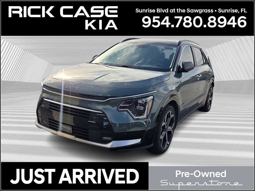 Recent Arrival! CARFAX One-Owner. 10 year or 100,000 mile Powertrain Warranty, 150 Point Inspection, Bluetooth, iPod Connector, Kia Certified, Leather, Navigation, BACK UP CAMERA, Unlimited Car Wash, Rick Case Rewards, 4-Wheel Disc Brakes, 8 Speakers, ABS brakes, Apple CarPlay & Android Auto, Brake assist, Dual front impact airbags, Dual front side impact airbags, Electronic Stability Control, Emergency communication system: Kia Connect (includes 1 year free trial), Front anti-roll bar, harman/kardon® Speakers, Knee airbag, Low tire pressure warning, Memory seat, Navigation System, Occupant sensing airbag, Overhead airbag, Power driver seat, Power Liftgate, Power moonroof, Power steering, Power windows, Radio: AM/FM/HD/SiriusXM, Rear anti-roll bar, Rear seat center armrest, Remote keyless entry, Smart Key w/ Push Button and Remote Start, Steering wheel mounted audio controls, Tachometer, Telescoping steering wheel, Tilt steering wheel, Trip computer, Wheels: 18" Machine Finished Alloy. Certified. Cityscape Green 2023 Kia Niro Plug-In Hybrid SX FWD 6-Speed Dual Clutch 1.6L I4 DGI Hybrid DOHC 16V LEV3-SULEV30 Kia Certified Pre-Owned Details: