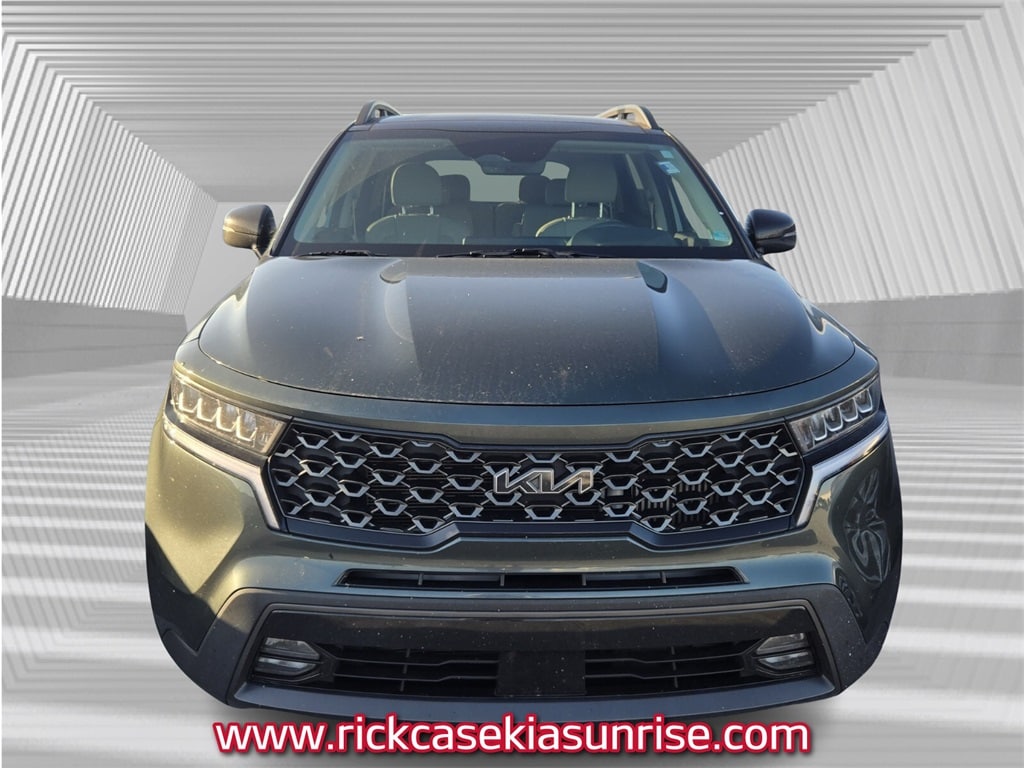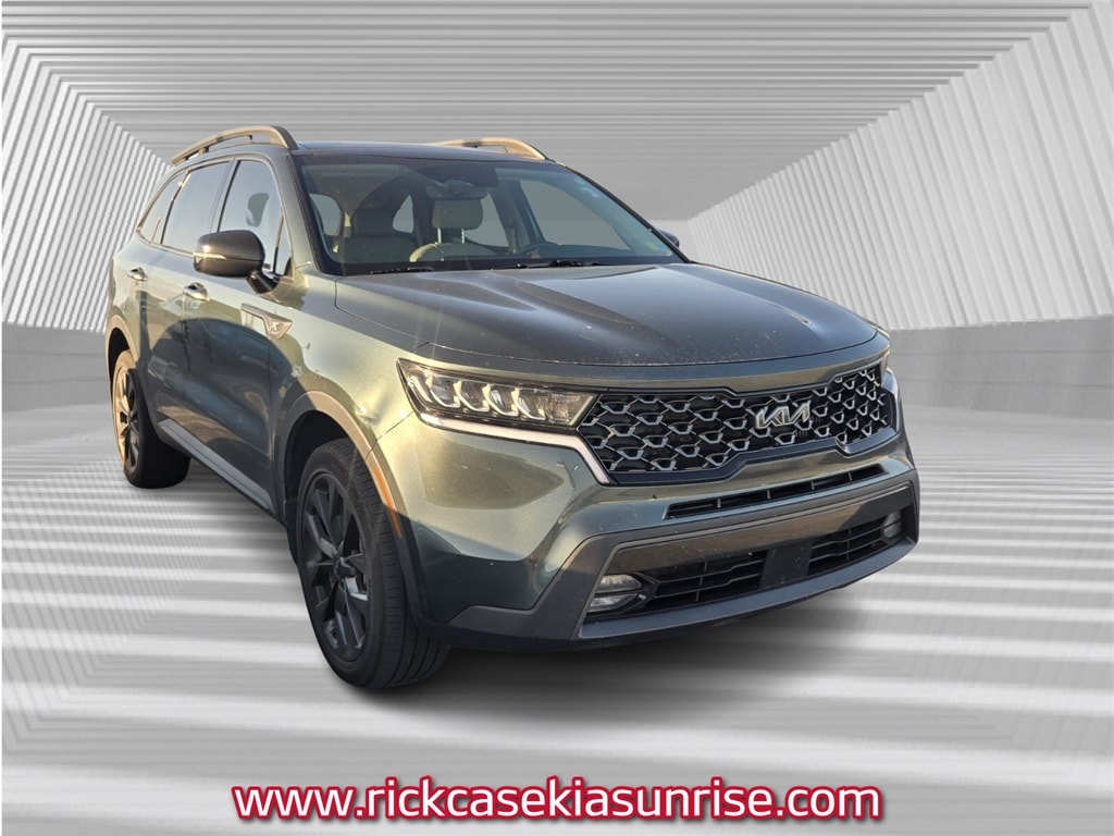 Recent Arrival! CARFAX One-Owner. Clean CARFAX. 10 year or 100,000 mile Powertrain Warranty, 150 Point Inspection, Bluetooth, Kia Certified, Leather, Navigation, Panoramic Roof, BACK UP CAMERA, Unlimited Car Wash, Rick Case Rewards, 4-Wheel Disc Brakes, 6 Speakers, ABS brakes, Alloy wheels, Apple CarPlay & Android Auto, Auto-dimming Rear-View mirror, Automatic temperature control, Brake assist, Delay-off headlights, Dual front impact airbags, Dual front side impact airbags, Electronic Stability Control, Emergency communication system, Exterior Parking Camera Rear, Front anti-roll bar, Front dual zone A/C, Front fog lights, Knee airbag, Low tire pressure warning, Navigation System, Occupant sensing airbag, Overhead airbag, Power driver seat, Power Liftgate, Power moonroof, Radio: AM/FM Audio System, Rear air conditioning, Rear anti-roll bar, Smart Key w/ Push Button and Remote Start, Steering wheel mounted audio controls, Tachometer, Telescoping steering wheel, Tilt steering wheel, Trip computer, Wheels: 8.5J x 20" Matte Gray Alloy. Certified. Aruba Green 2023 Kia Sorento X-Line EX AWD 8-Speed DCT 2.5L I4 DGI Turbocharged DOHC 16V LEV3-ULEV70 281hp Kia Certified Pre-Owned Details: