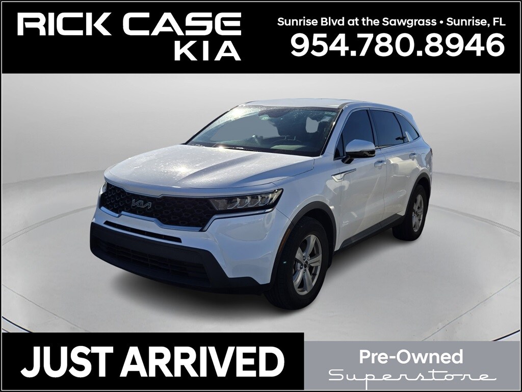 Recent Arrival! Priced below KBB Fair Purchase Price! CARFAX One-Owner. 10 year or 100,000 mile Powertrain Warranty, 150 Point Inspection, Kia Certified, Unlimited Car Wash, Rick Case Rewards, 4-Wheel Disc Brakes, 7.0J x 17" Alloy Wheels, ABS brakes, Alloy wheels, Brake assist, Delay-off headlights, Electronic Stability Control, Exterior Parking Camera Rear, Fully automatic headlights, Panic alarm, Security system, Speed control. Certified. Glacial White Pearl 2023 Kia Sorento LX FWD 8-Speed Automatic 2.5L I4 DGI DOHC 16V LEV3-ULEV70 191hp Kia Certified Pre-Owned Details: