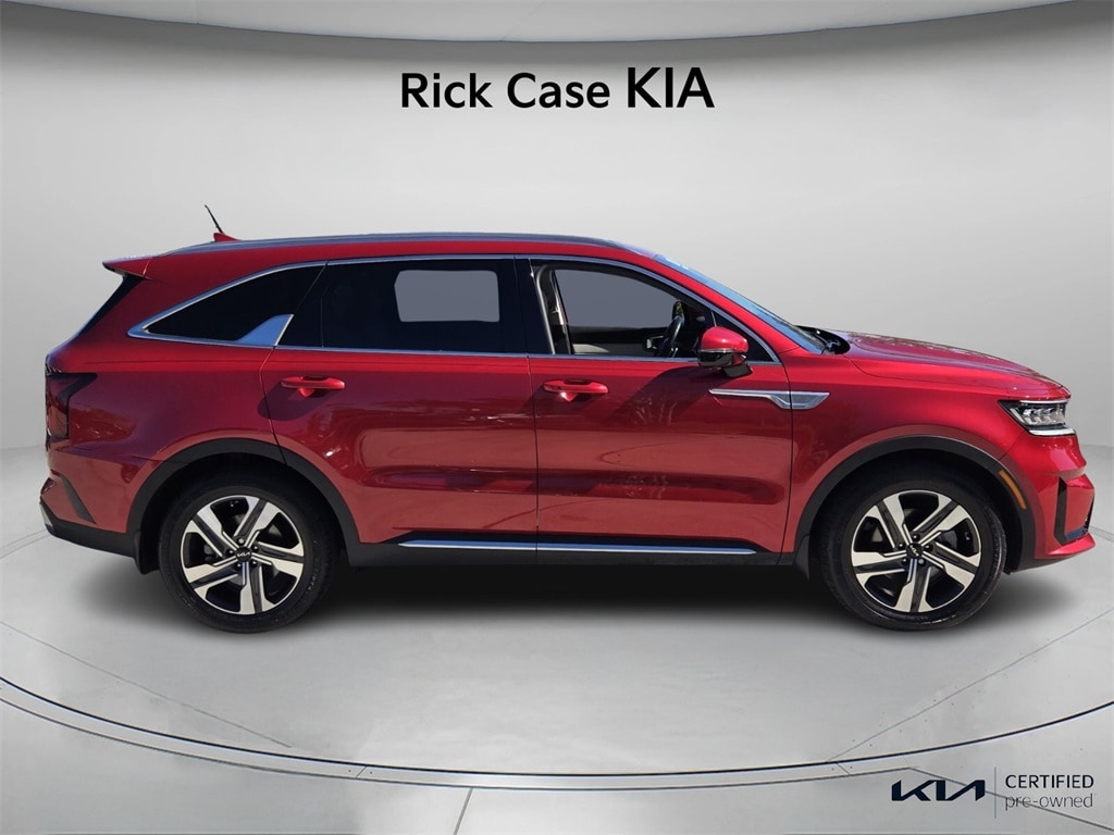 CARFAX One-Owner. 10 year or 100,000 mile Powertrain Warranty, 150 Point Inspection, Kia Certified, Unlimited Car Wash, Rick Case Rewards, 4-Wheel Disc Brakes, ABS brakes, Alloy wheels, Apple CarPlay & Android Auto, Auto-dimming Rear-View mirror, Automatic temperature control, Brake assist, Delay-off headlights, Front dual zone A/C, Front fog lights, Memory seat, Navigation System, Panic alarm, Power driver seat, Power Liftgate, Security system, Speed control, Wheels: 19" Machine-Finished Alloy. Certified. Runway Red 2023 Kia Sorento Hybrid SX Prestige AWD 6-Speed Automatic 1.6L I4 DGI Hybrid Turbocharged DOHC 16V LEV3-ULEV70 Kia Certified Pre-Owned Details: