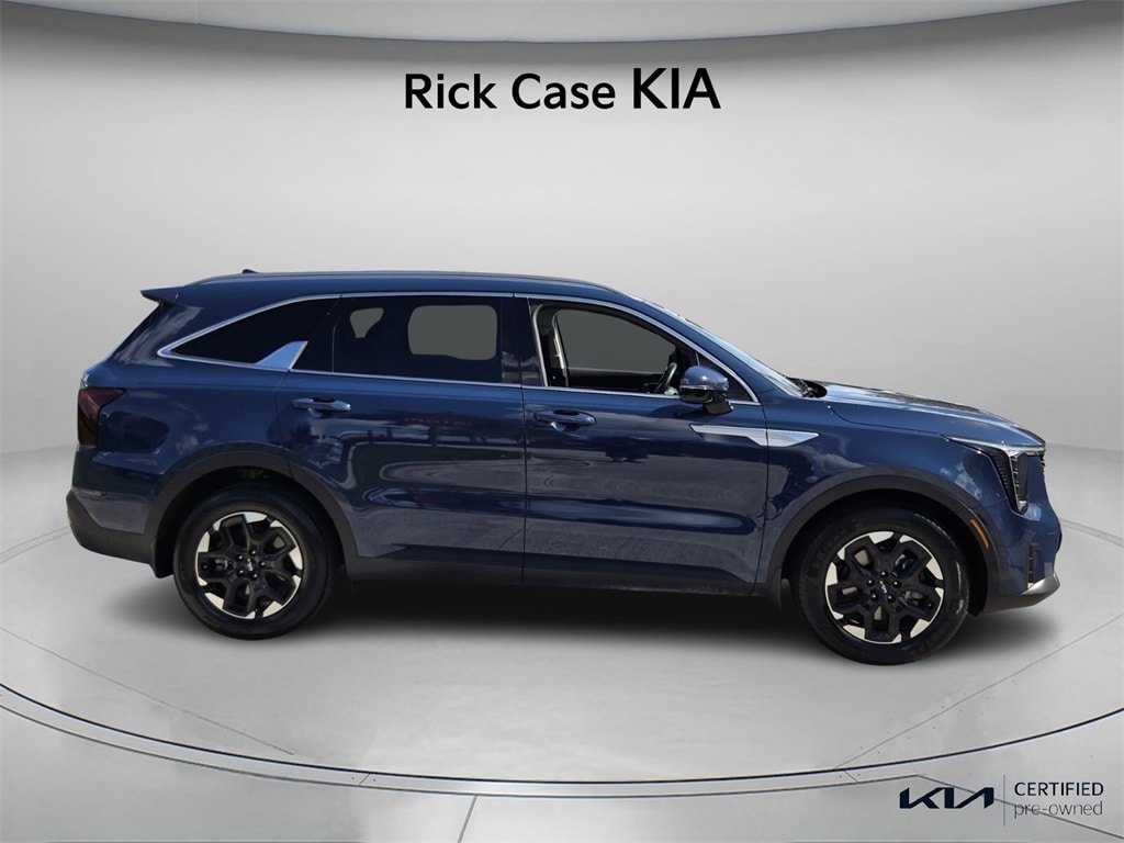 Priced below KBB Fair Purchase Price! CARFAX One-Owner. Clean CARFAX. 150 Point Inspection, Bluetooth, iPod Connector, Kia Certified, Leather, Navigation, BACK UP CAMERA, Unlimited Car Wash, Rick Case Rewards, 4-Wheel Disc Brakes, ABS brakes, Dual front impact airbags, Dual front side impact airbags, Emergency communication system: 911 Connect, Exterior Parking Camera Rear, Front anti-roll bar, Knee airbag, LED Interior Lighting, Low tire pressure warning, Navigation System, Panoramic Power Sunroof w/Power Sunshade, Panoramic Sunroof Package, Tachometer, Telescoping steering wheel, Tilt steering wheel, Trip computer. Certified. Midnight Lake Blue 2024 Kia Sorento S FWD 8-Speed Automatic 2.5L I4 DGI DOHC 16V LEV3-SULEV30 191hp Kia Certified Pre-Owned Details: