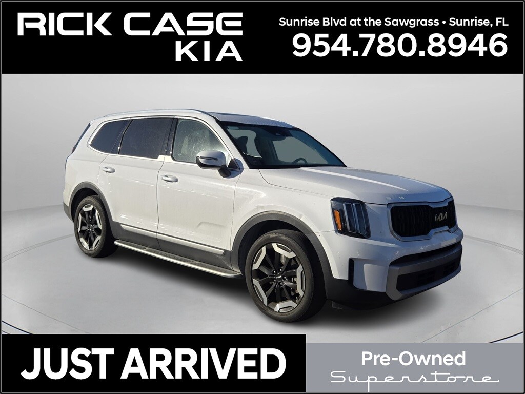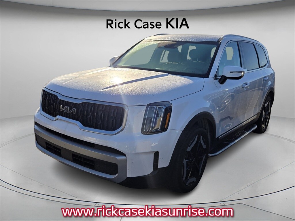 Recent Arrival! CARFAX One-Owner. 150 Point Inspection, Bluetooth, iPod Connector, Navigation, Unlimited Car Wash, Rick Case Rewards, 2nd Row Captain Chairs, 4-Wheel Disc Brakes, ABS brakes, Apple CarPlay & Android Auto, Dual front impact airbags, Dual front side impact airbags, Emergency communication system: 911 Connect, EX Captain's Chair Package, Exterior Parking Camera Rear, Front anti-roll bar, Heated & Ventilated Front Bucket Seats, Knee airbag, Low tire pressure warning, Navigation System, Occupant sensing airbag, Overhead airbag, Power driver seat, Power Liftgate, Power moonroof, Power steering, Rear anti-roll bar, Rear side impact airbag, Steering wheel mounted audio controls, Telescoping steering wheel, Tilt steering wheel, Trip computer, Wheels: 20" x 7.5" Black Finish. Certified. Glacial White Pearl 2024 Kia Telluride EX FWD 8-Speed Automatic 3.8L V6 DOHC Kia Certified Pre-Owned Details: