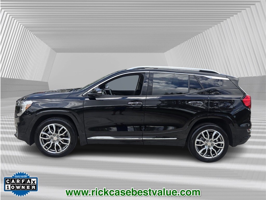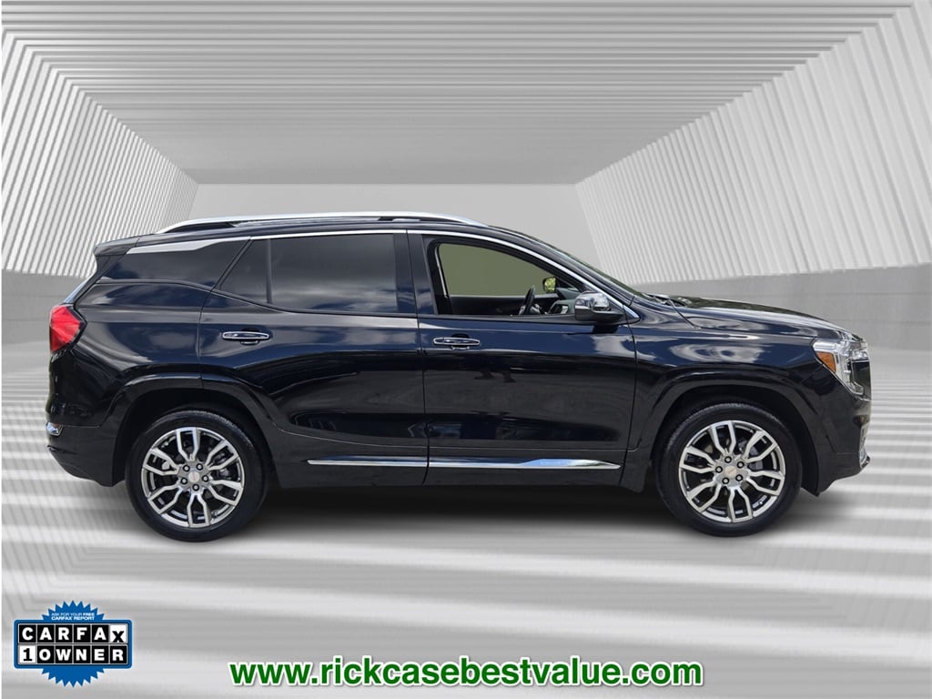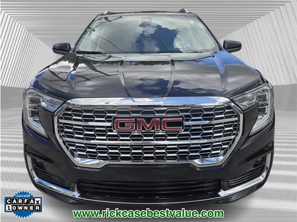 Priced below KBB Fair Purchase Price! CARFAX One-Owner. Clean CARFAX. 10 year or 100,000 mile Powertrain Warranty, 150 Point Inspection, Unlimited Car Wash, Rick Case Rewards, 2 USB Data Ports, 4-Wheel Disc Brakes, 6-Way Power Front Passenger Seat, 8-Way Power Driver Seat Adjuster, ABS brakes, Alloy wheels, Auto-dimming Rear-View mirror, Automatic temperature control, Bluetooth® For Phone, Brake assist, Delay-off headlights, Electronic Stability Control, Front dual zone A/C, Front fog lights, Front Passenger 2-Way Power Lumbar, Heads-Up Display, Memory seat, Navigation system: GMC Connected Navigation, Panic alarm, Power Driver Lumbar Control, Power driver seat, Power Liftgate, Preferred Equipment Group 5SA, Premium 7-Speaker Bose Sound System w/Amplifier, Security system, Speed control, Wheels: 19" x 7.5" Bright Machined Aluminum. Ebony Twilight Metallic 2024 GMC Terrain Denali AWD 9-Speed Automatic 1.5L DOHC