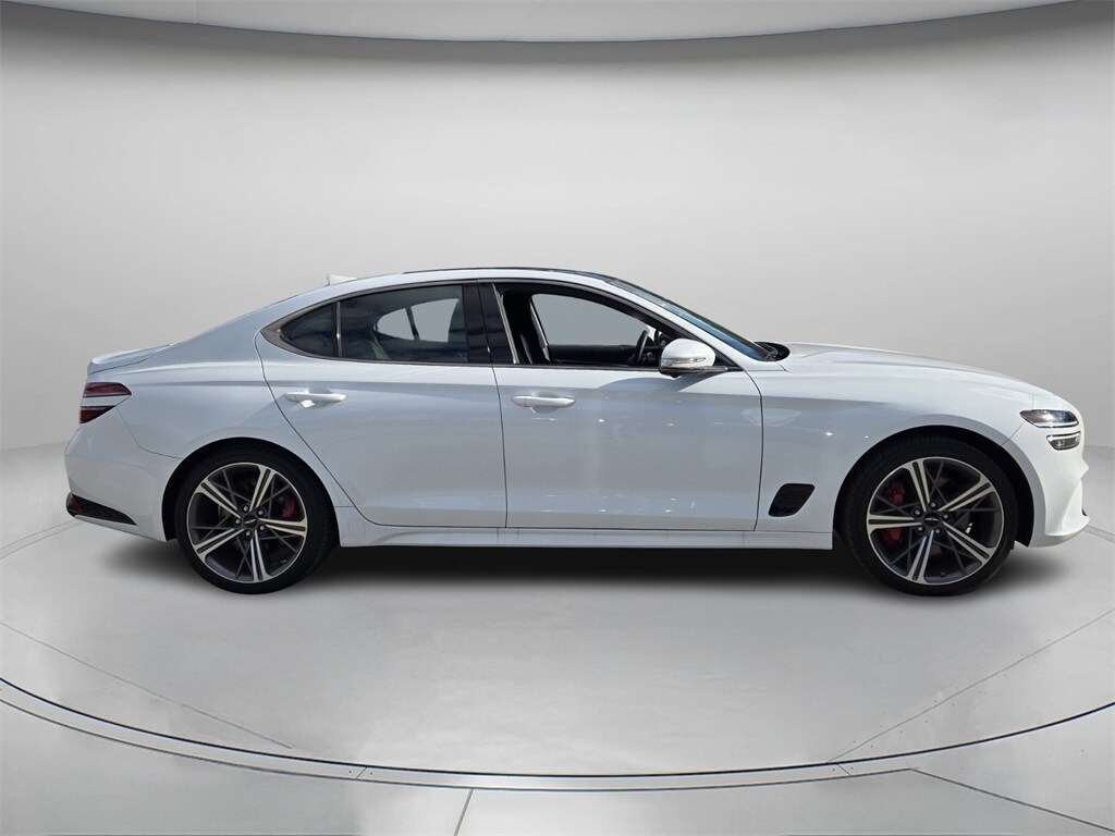 Recent Arrival! CARFAX One-Owner. Clean CARFAX. 10 year or 100,000 mile Powertrain Warranty, power sunroof, low mileage, warranty, navigation, power seat, rare find, 150 point inspection, Leather, local trade, G70 3.3T Sport Advanced, 3.3L V6 DGI DOHC 24V, 8-Speed Automatic, Alta White, Obsidian Black w/Leatherette Seating Surfaces, Navigation System, Sport Prestige Package. Alta White 2025 Genesis G70 3.3T Sport Advanced AWD 8-Speed Automatic 3.3L V6 DGI DOHC 24V