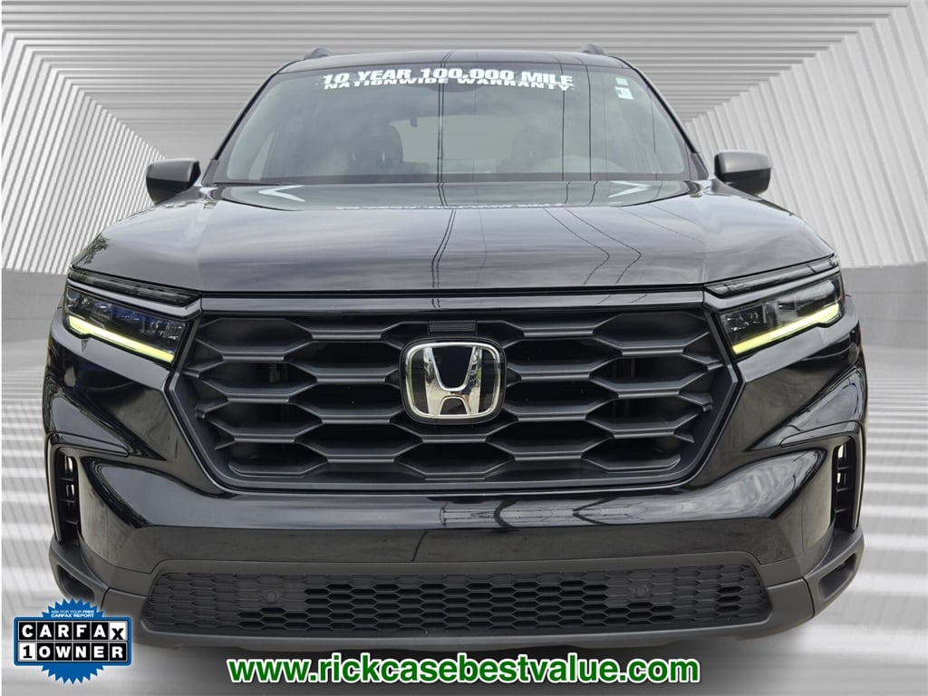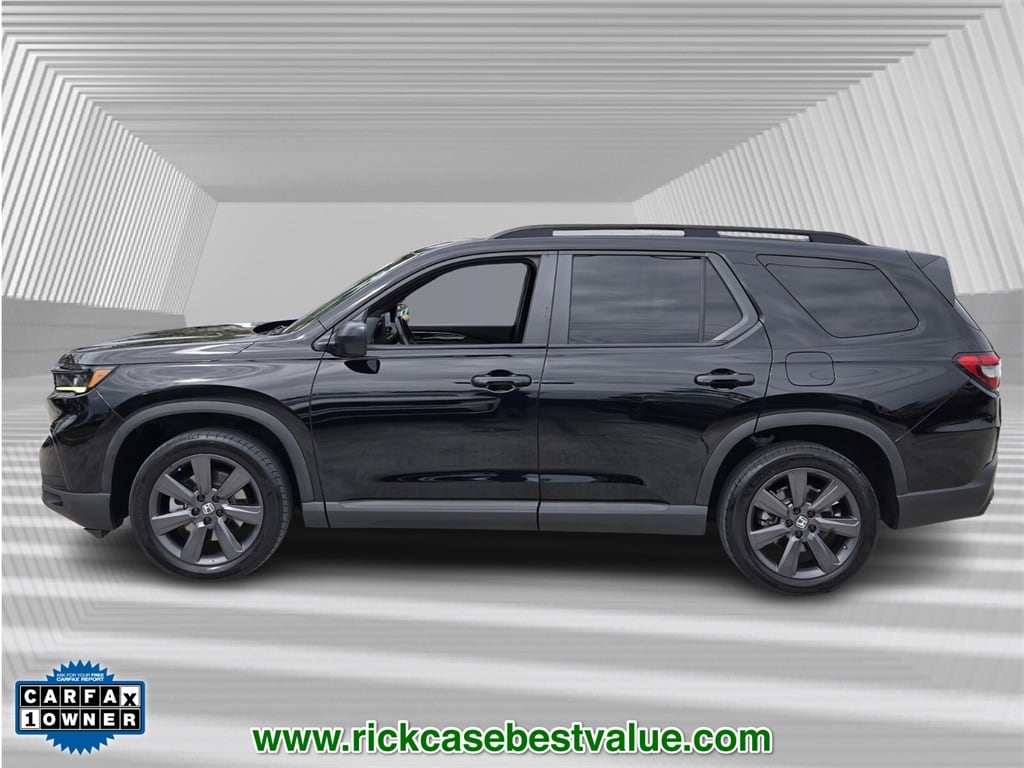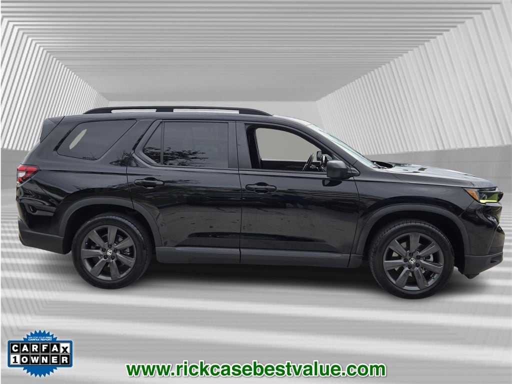 CARFAX One-Owner. Clean CARFAX. 10 year or 100,000 mile Powertrain Warranty, 150 Point Inspection, Unlimited Car Wash, Rick Case Rewards, 4-Wheel Disc Brakes, ABS brakes, Adaptive Cruise Control: Adaptive Cruise Control (ACC) with Low-Speed Follow, Alloy wheels, Apple CarPlay/Android Auto, Ball Mount, Blind Spot Information (BSI) System warning, Electronic Stability Control, Hitch Panel, Lane departure: Lane Keeping Assist System (LKAS) active, Panic alarm, Power driver seat, Security system, Speed control, Tow Package, Trailer Hitch (PPO), Trailer Hitch Harness (PPO), Wheels: 20" Fully Painted Shark Gray w/Blk Lug Nuts. Crystal Black Pearl 2023 Honda Pilot Sport FWD 10-Speed Automatic 3.5L V6 DOHC 24V