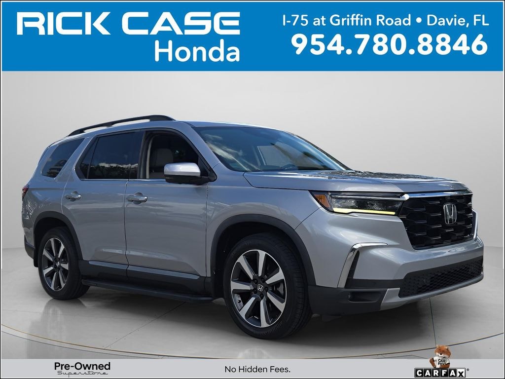 Recent Arrival! Odometer is 12361 miles below market average! CARFAX One-Owner. Clean CARFAX. Leather, Bluetooth, AWD, Auto Transmission, All Power Options, Local Trade, Low Mileage, AWD. Silver 2023 Honda Pilot Elite AWD 10-Speed Automatic 3.5L V6 DOHC 24V