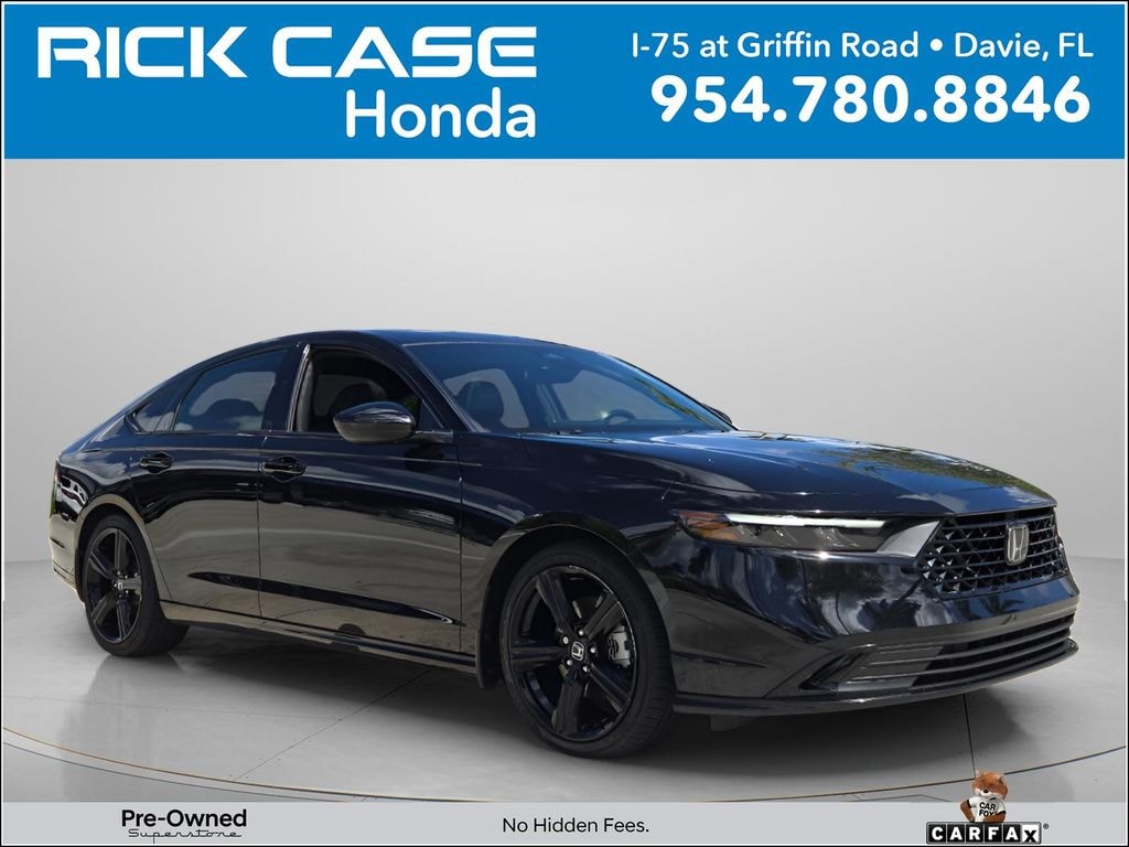 Recent Arrival! CARFAX One-Owner. Leather, Bluetooth, Auto Transmission, All Power Options, Local Trade, Low Mileage, 2.0L 16V DOHC. Black 2024 Honda Accord Hybrid Sport-L FWD eCVT 2.0L 16V DOHC