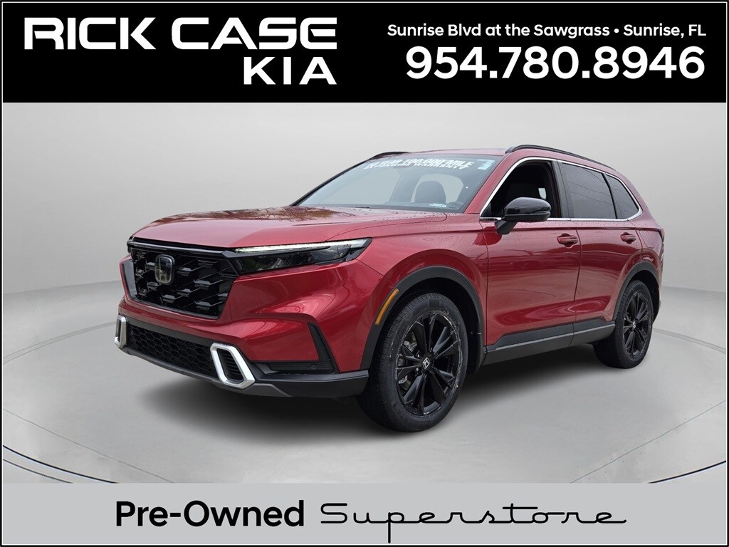 Priced below KBB Fair Purchase Price! CARFAX One-Owner. Clean CARFAX. 10 year or 100,000 mile Powertrain Warranty, 150 Point Inspection, Unlimited Car Wash, Rick Case Rewards, 4-Wheel Disc Brakes, ABS brakes, Adaptive Cruise Control: Adaptive Cruise Control (ACC) with Low-Speed Follow, Air Conditioning, Alloy wheels, Auto-dimming Rear-View mirror, Automatic temperature control, Blind Spot Information (BSI) System warning, Electronic Stability Control, Exterior Parking Camera Rear, Memory seat, Navigation system: Honda Satellite-Linked Navigation System, Panic alarm, Power driver seat, Power Liftgate, Power moonroof, Security system, Speed control, Wheels: 19" Berlina Black Alloy. Radiant Red Metallic 2024 Honda CR-V Hybrid Sport Touring AWD eCVT 2.0L I4 DOHC 16V