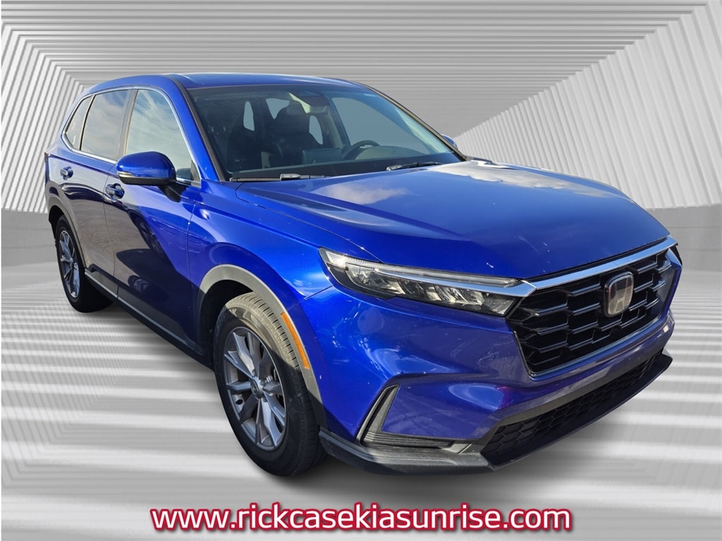 Recent Arrival! CARFAX One-Owner. Clean CARFAX. 10 year or 100,000 mile Powertrain Warranty, 150 Point Inspection, Bluetooth, BACK UP CAMERA, Unlimited Car Wash, Rick Case Rewards, 4-Wheel Disc Brakes, ABS brakes, Dual front impact airbags, Dual front side impact airbags, Front anti-roll bar, Knee airbag, Low tire pressure warning, Occupant sensing airbag, Overhead airbag, Power moonroof, Rear anti-roll bar, Rear side impact airbag, Wheels: 18" Sparkle Silver Metallic. Blue 2024 Honda CR-V EX FWD CVT 1.5L I4 DOHC 16V