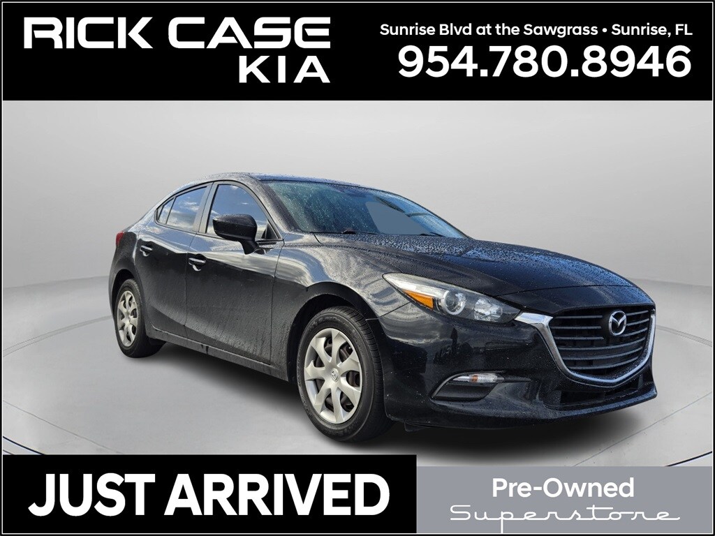 Recent Arrival! Priced below KBB Fair Purchase Price! Clean CARFAX. 150 Point Inspection, Unlimited Car Wash, Rick Case Rewards, 4-Wheel Disc Brakes, ABS brakes, Brake assist, Electronic Stability Control, Exterior Parking Camera Rear, Panic alarm, Speed control, Wheels: 16" x 6.5J" Steel w/Full Wheel Covers. Jet Black Mica 2018 Mazda Mazda3 Sport FWD 6-Speed Automatic SKYACTIV®-G 2.0L 4-Cylinder DOHC 16V