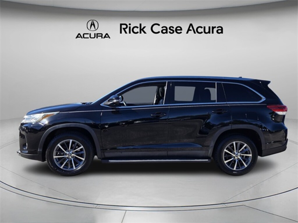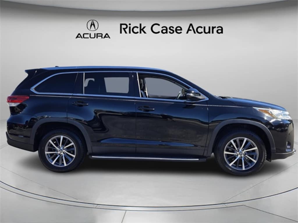 Leather Seating, Local Trade, Power Moonroof, Reverse Sensing, RainSensing Wipers, Bluetooth, Not a Rental, Non - Smoker, Great Value, Low Miles, Clean Car, BLIND SPOT, RADAR CRUISE CONTROL, 3rd Row & Pass Thru All-Weather Floor Mat Package, 3rd Row All-Weather Floor Mats, 4-Wheel Disc Brakes, ABS brakes, Active Cruise Control, Air Conditioning, Cargo Liner, Cargo Net - Envelope, Carpet Floor Mats, Exterior Parking Camera Rear, First Aid Kit, Leather Seat Trim, Navigation System, Pass Thru All-Weather Floor Mat, Power driver seat, Power Liftgate, Power steering, Power windows, Preferred Accessory Package, Remote keyless entry, Steering wheel mounted audio controls, Wheels: 18" Turbine-Look Alloy. Midnight Black Metallic 2019 Toyota Highlander XLE FWD 8-Speed Automatic Electronic with ECT-i 3.5L V6