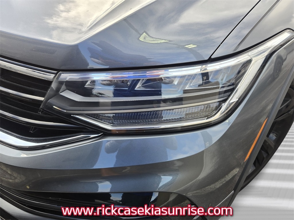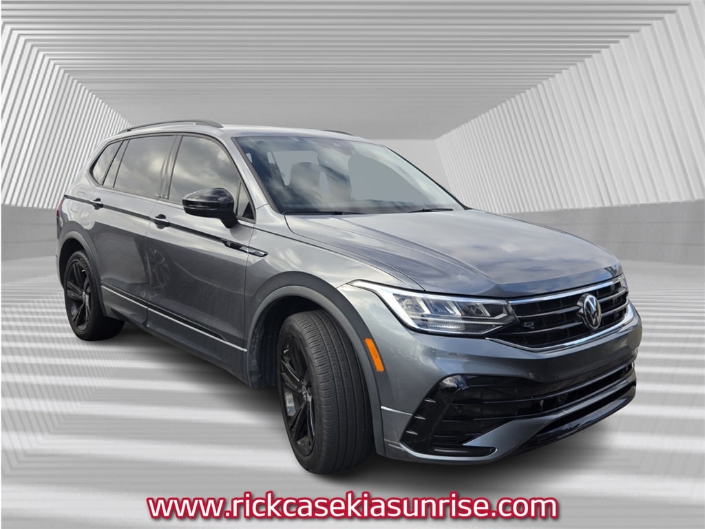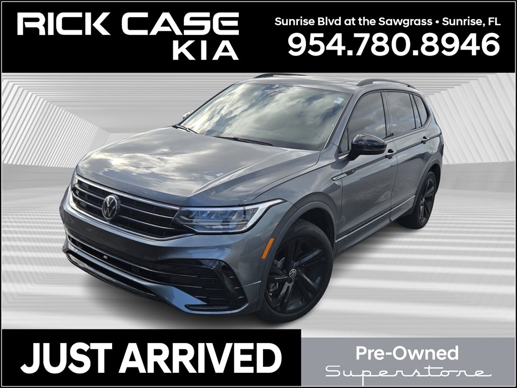 Recent Arrival! Clean CARFAX. 10 year or 100,000 mile Powertrain Warranty, 150 Point Inspection, Bluetooth, Leather, BACK UP CAMERA, Unlimited Car Wash, Rick Case Rewards, 4-Wheel Disc Brakes, 4-Wheel Independent Suspension, 6 Speakers, ABS brakes, Air Conditioning, AM/FM radio: SiriusXM with 360L, Automatic temperature control, Dual front impact airbags, Dual front side impact airbags, Emergency communication system: VW Car-Net Safe & Secure 5-year, Front anti-roll bar, Heated front seats, Low tire pressure warning, Occupant sensing airbag, Overhead airbag, Perforated V-Tex Leatherette Seating Surfaces, Power Liftgate, Power moonroof, Power windows, Rear anti-roll bar, Remote keyless entry, Split folding rear seat, Steering wheel mounted audio controls, Tachometer, Telescoping steering wheel, Tilt steering wheel, Trip computer, Wheels: 19" Black Painted Twin 5-Spoke Alloy. Platinum Gray Metallic 2023 Volkswagen Tiguan 2.0T SE R-Line Black FWD 8-Speed Automatic with Tiptronic 2.0L TSI DOHC